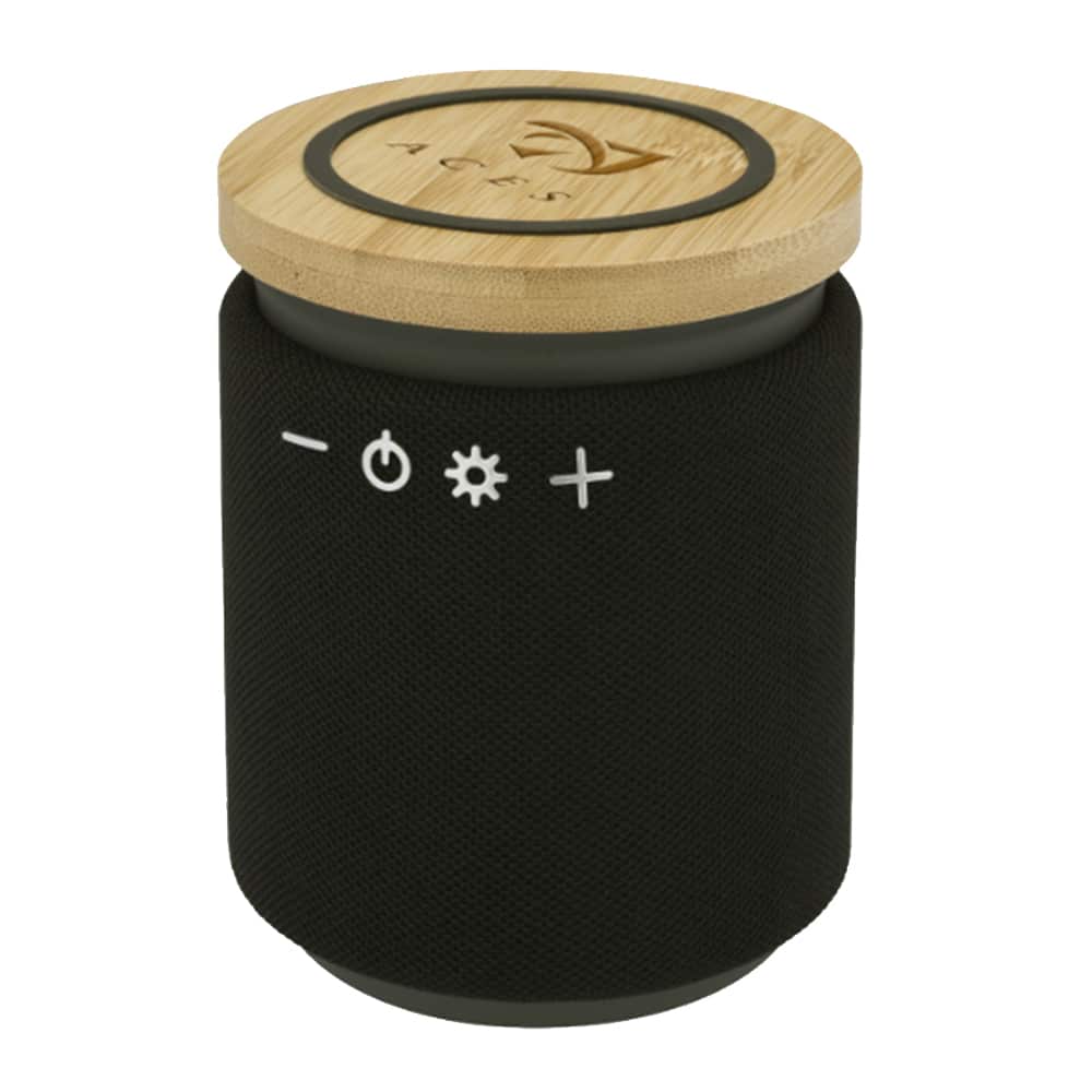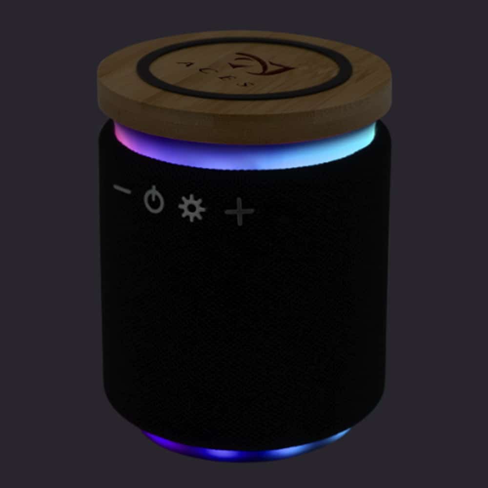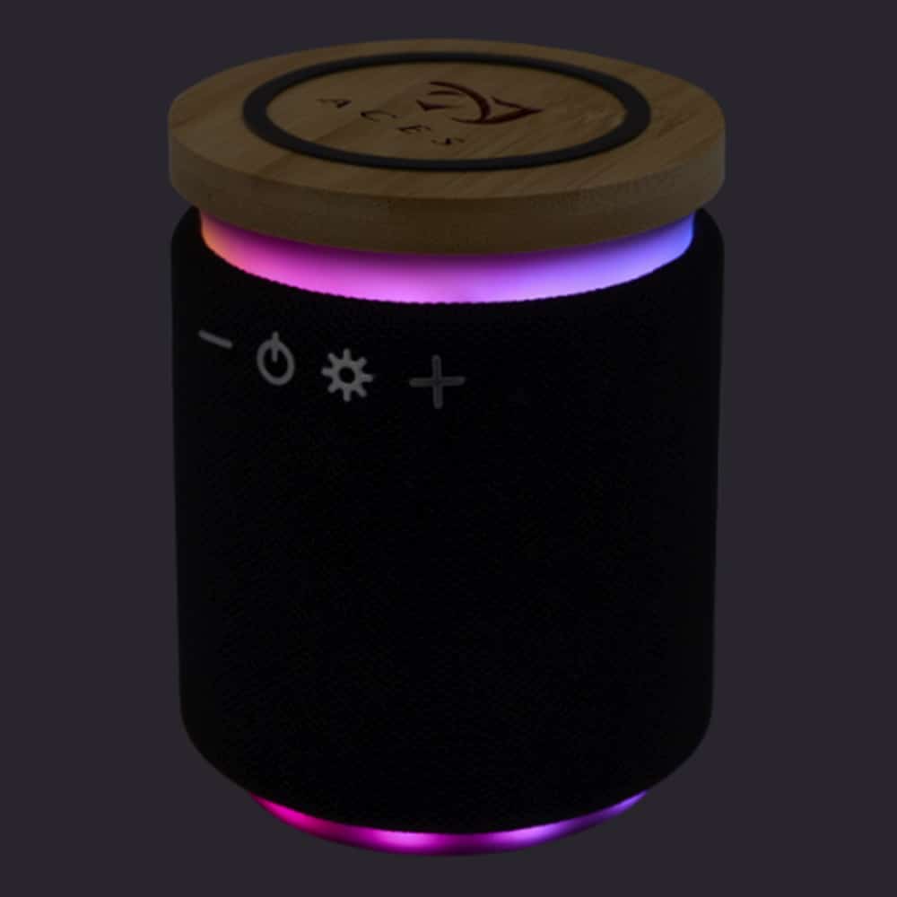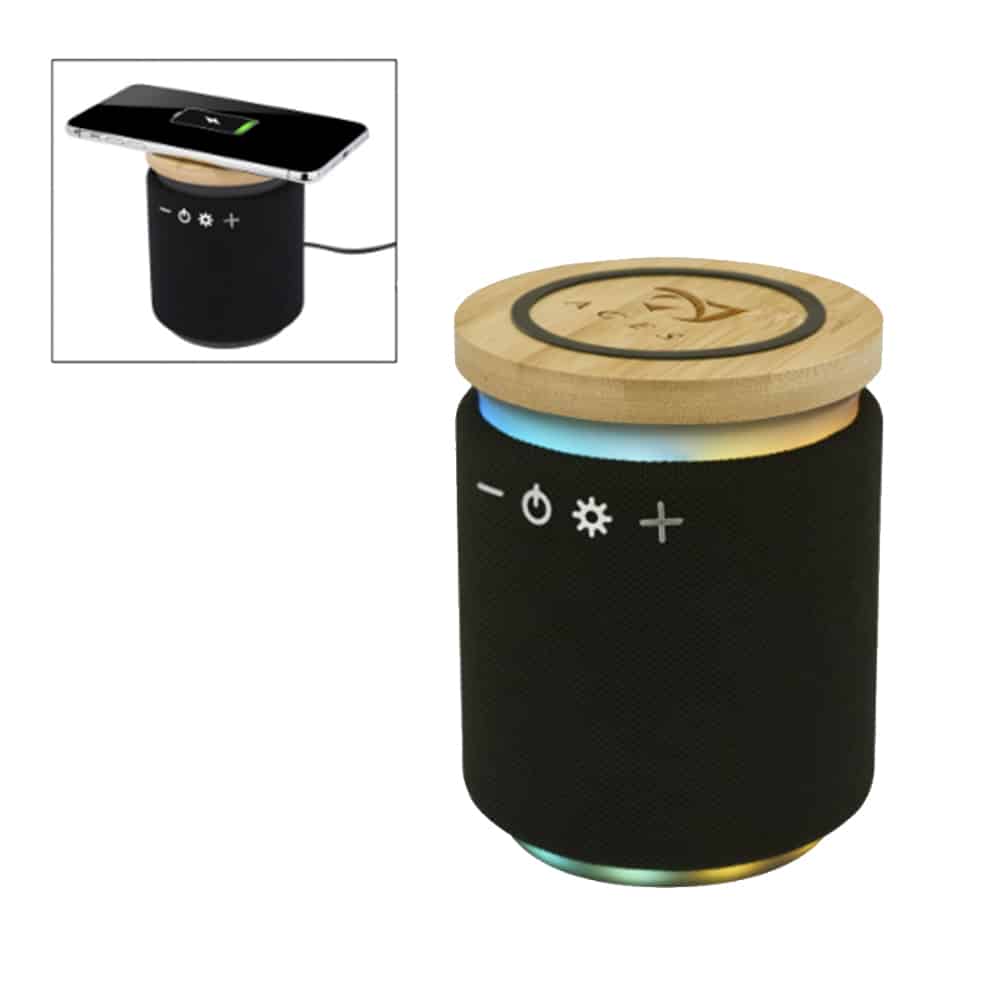 - Light up, color changing 5 watt wireless speaker with 10 watt wireless charging surface