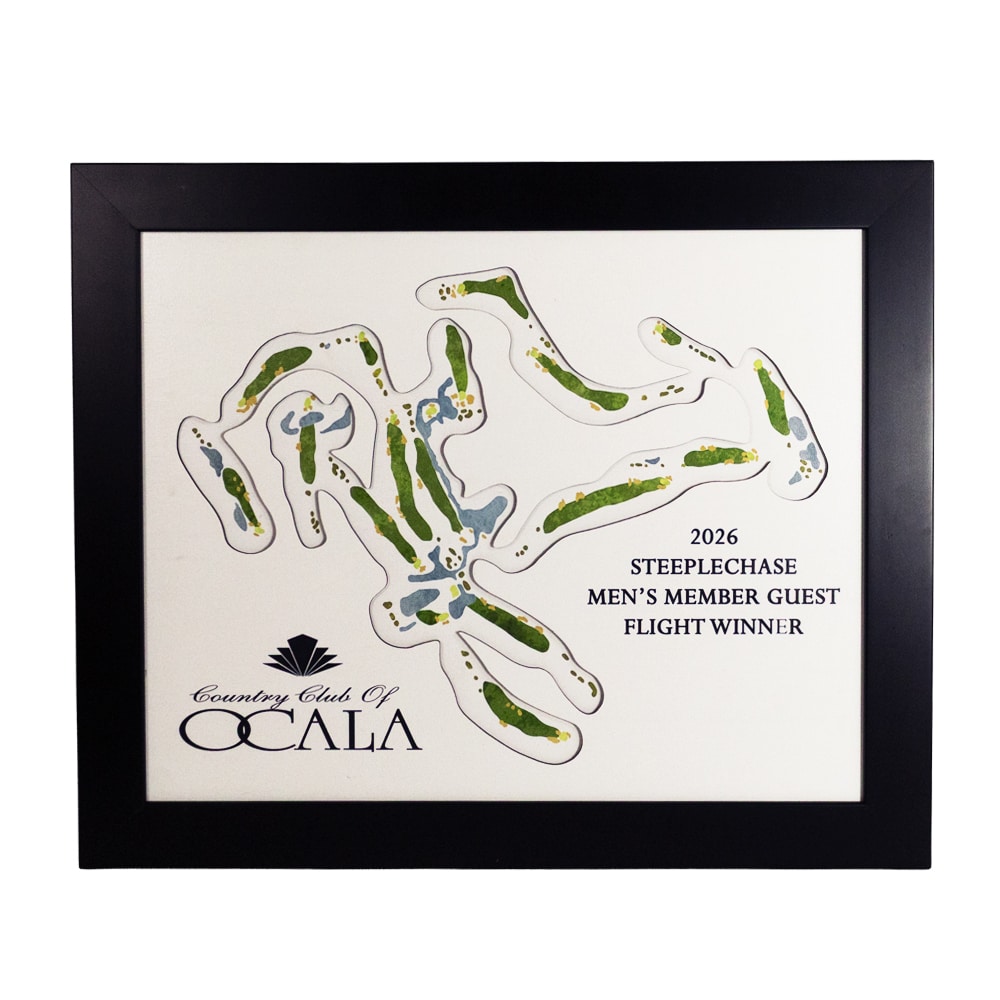 A stunning, multi-dimensional award featuring an intricately cut top layer and a custom UV-printed course overhead beneath. Personalize it further with a floated logo or UV-printed text on the top layer. A truly unique and visually striking piece that makes an unforgettable award.