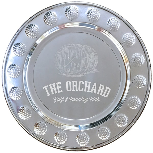 Golf ball plate with easel is rotary engraved with your club’s logo and event information.