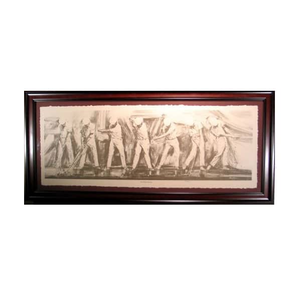 This piece is a limited edition sketch by award winning artist, Paul Kuchno. It features Ben Hogans swing through each step. While it will always be contested as to who the best golfer may be; there is no question that the best swing belongs to Hogan.
