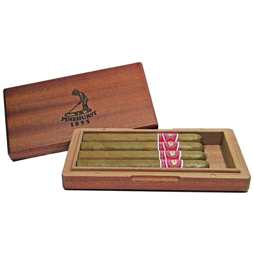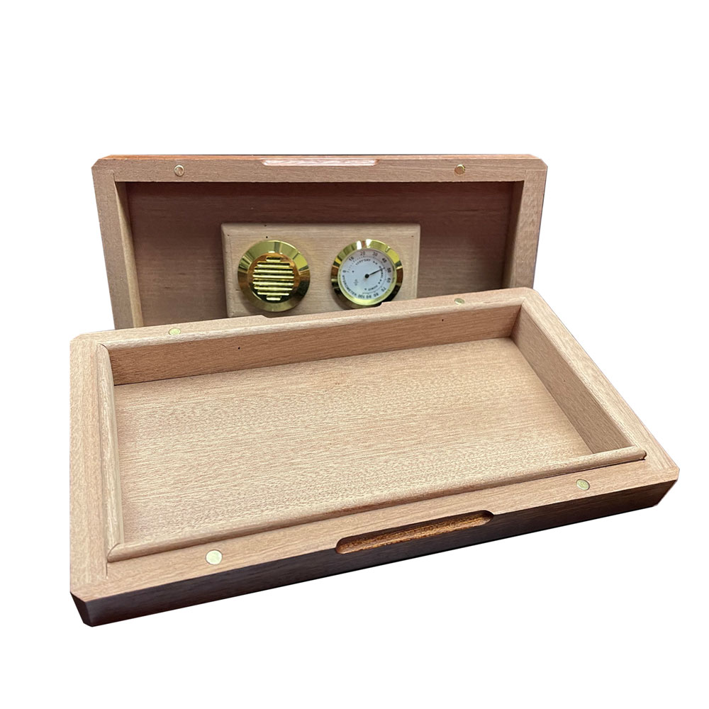 Links travel humidor can hold 4 cigars and features a hygrometer on the under side of the lid.