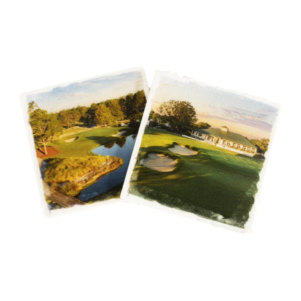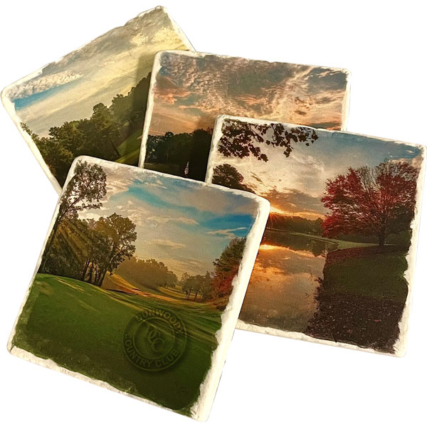 Full color images and logos adorn these beautiful stone marble coasters. Each coaster measures 4″.
