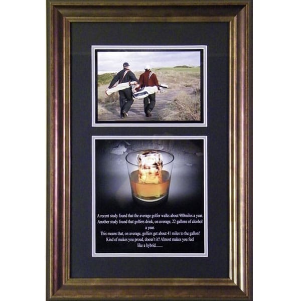 A humorous equation explaining how many miles to the gallon of alcohol an average golfer gets.