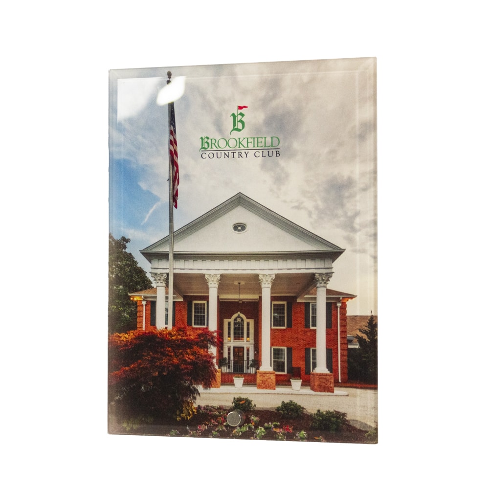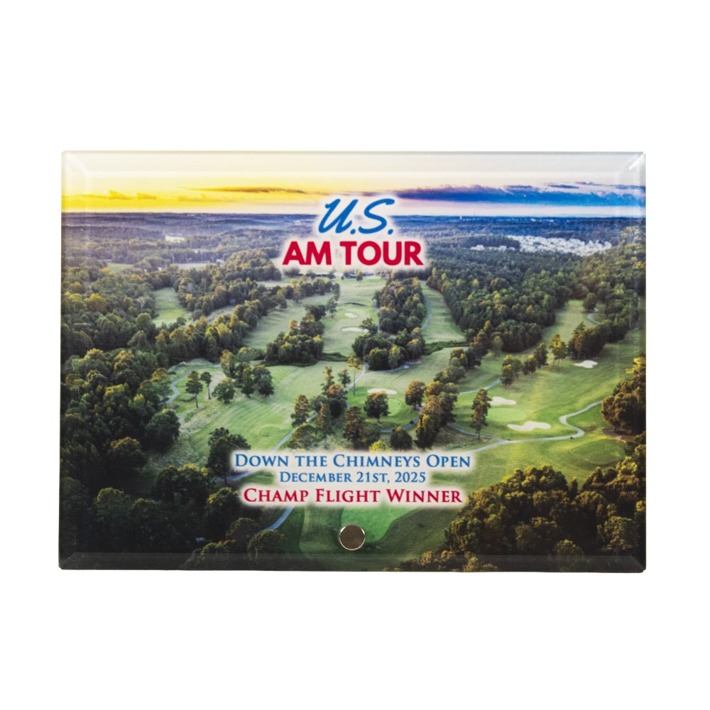 A sleek 5″ x 7″ sublimatable horizontal glass award featuring a polished silver pin accent, fully customizable with your photo, logo, and text—perfect for commemorating your next championship in crisp, vibrant detail.