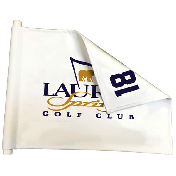 On course flag comes with a tube inserted that allows the flag to be used on course. Great for sponsors during tournaments. One size only at 12″x 17″.