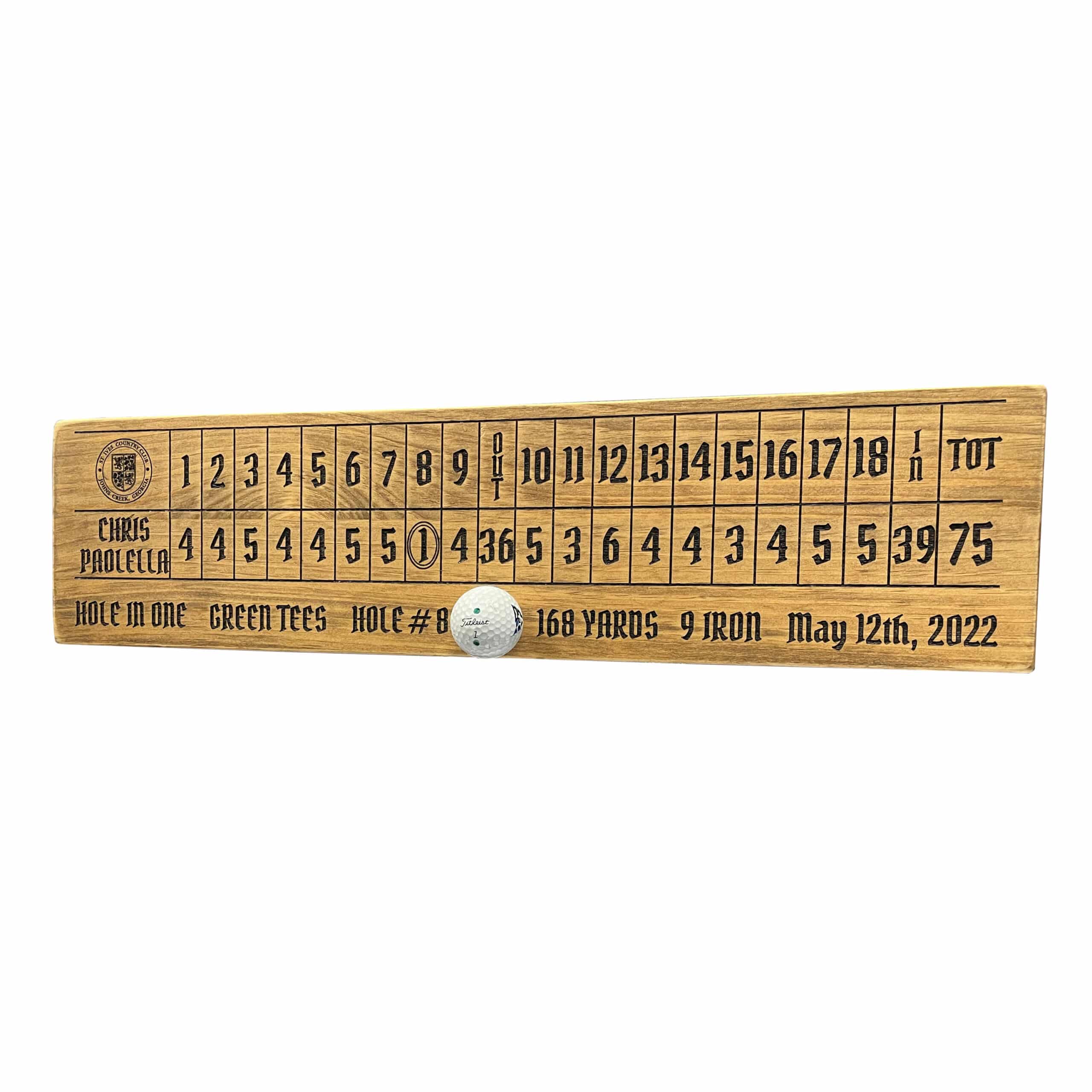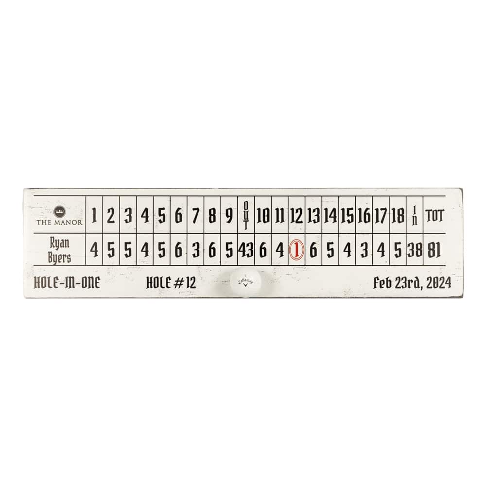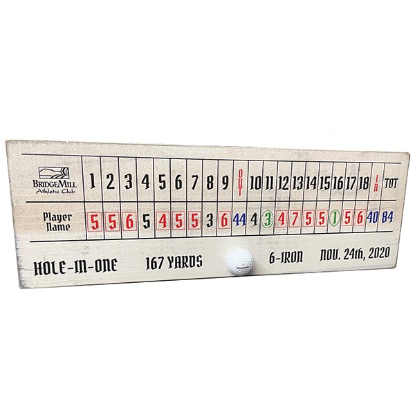 6″x24″x1″ solid poplar uv printed HIO sign. Display your scorecard – if you dare – with that awesome hole in one! Sign also contains club selection, yardage, and date.